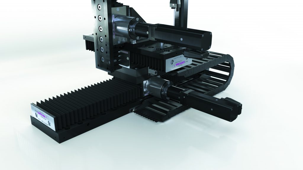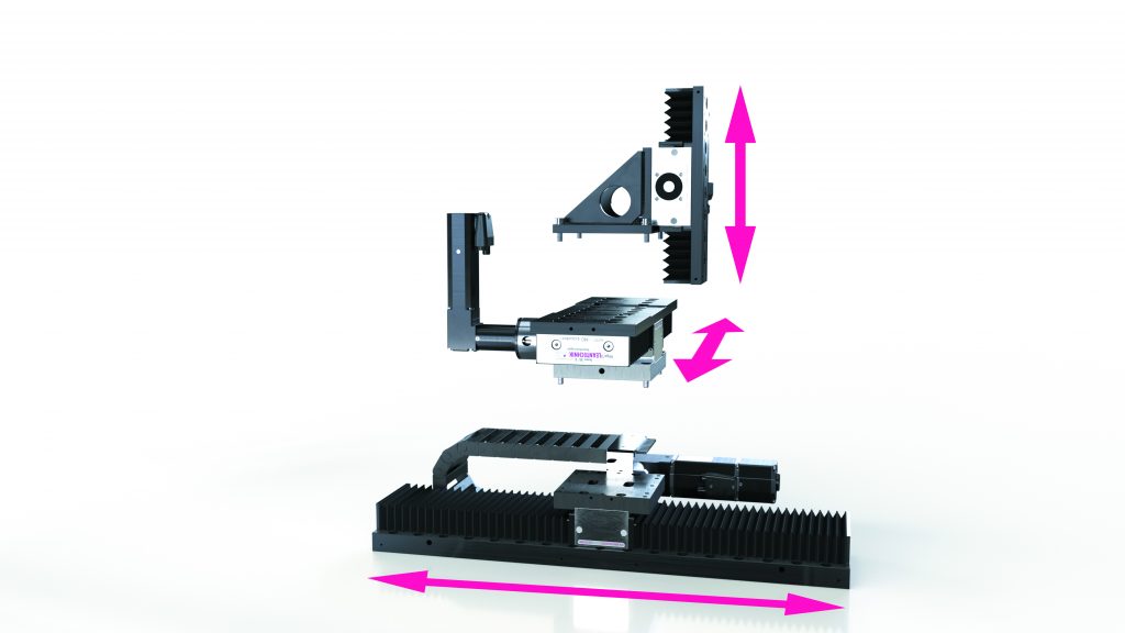 Auch die Antriebseinheit des Positionierungssystems ist modular aufgebaut. Sie setzt sich aus einem bürstenlosen 24VDC-Servoantrieb mit integriertem Controller, einer Haltebremse, dem Getriebe sowie einer Klemmkupplung zusammen. Der Controller ist frei programmierbar und verfügt über eine CAN-Schnittstelle (CANopen Drives-Profil DSP402). Die Achsen sind als gerade oder winklige Antriebseinheit mit Hubgeschwindigkeiten von 35 bzw. 90 mm/s lieferbar.