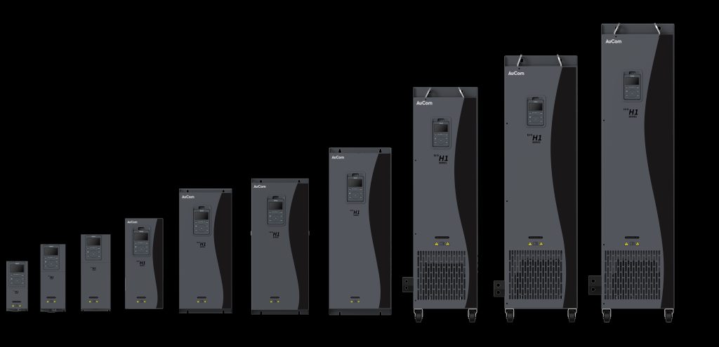 AuCom präsentiert mit der neuen H1-Serie vielseitig einsatzbare Frequenzumrichter für ein breites Anwendungsspektrum. Das kompakte Blockdesign benötigt nur wenig Platz im Schaltrschrank. Zusammen mit den LV Packaging Solutions stellen die H1-Umrichter eine Antriebslösung dar, die auf die Anforderungen heutiger Industrieanlagen und -produktionen zugeschnitten ist. Die Umrichter decken einen Leistungsbereich von 4 bis 450kW (380-460V, 9-820A) ab und unterstützen Motorsteuerungstypen wie SPM, 1PM, SynRM und IM. Neben mehreren Encoder-Karten und industriellen Anwendungsmakros wird auch eine Vielzahl an Kommunikationsprotokollen abgedeckt, z.B. CANopen, Profibus-DP, Profinet, Ethernet/IP und Ethercat. Die LCD-Tastatur zur Standardkonfiguration, der schnelle Wechsel zwischen Deutsch, Englisch und Spanisch sowie Funktionen wie eine Parameterklassifizierung und -schnellkopie tragen ebenfalls zur Bedienfreundlichkeit der Geräte bei.