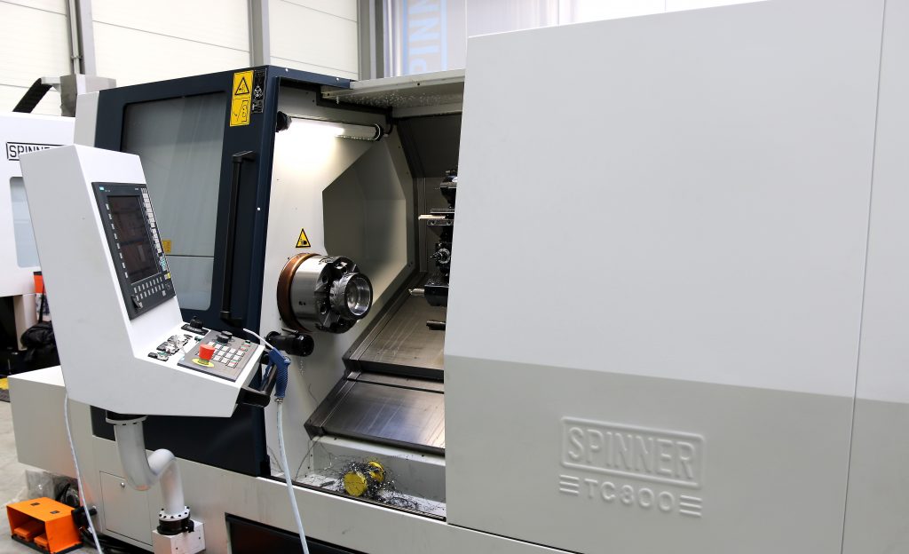Bei der Herstellung der oft hochspezialisierten Bearbeitungszentren spielen die Zulieferer eine große Rolle. „Wir legen sehr viel Wert auf Qualität und Verlässlichkeit“, sagt Maier. „Das sind entscheidende Faktoren für unseren eigenen Erfolg.“ Entsprechend erwartet der Maschinenbauer für seine Anlagen Komponenten, die genau die gewünschten Anforderungen erfüllen. Deshalb arbeitet Spinner in Hinblick auf die Antriebstechnik u.a. mit dem mittelständischen Unternehmen Stöber zusammen. Ursprünglich ging es dabei vor einigen Jahren um Servomotoren und Antriebsmodule für Fräsmaschinen. „Wir konnten mit einem guten Preis/Leistungs-Verhältnis und dem antriebstechnischen Gesamtkonzept überzeugen“, sagt Udo Cyrol, bei Stöber zuständig für den Vertrieb von Antriebs- und Automatisierungstechnik. Zudem schätzten die Verantwortlichen bei Spinner die gute und schnelle Beratung des Zulieferers. Das zeigte sich auch bei der Entwicklung der CNC-Universaldrehmaschinen der TC-Baureihe, die in vier Baugrößen erhältlich ist. Die größte Version ist die TC800, eine kompakte Revolverdrehmaschine mit einer Drehzahl bis 2.600U/min bei einer maximalen Leistung von 63kW. Der Radial- oder Axialrevolver ist für bis zu 24 Werkzeuge ausgelegt. Zudem besteht die Option einer Y-Achse sowie einer Gegenspindel. Anwender können auf dieser Maschine Drehteile mit Durchmessern bis 800 und Längen bis 1.500mm fertigen. „Wir haben den Fokus auf eine leistungsstarke Zerspanung bei relativ niedrigen Spindeldrehzahlen gelegt“, beschreibt Maier. „Daneben soll die Spindeldrehzahl trotzdem kurzzeitig hoch genug sein können, um kleine Durchmesser mit ausreichender Schnittgeschwindigkeit bearbeiten zu können – und für ein präzises Feindrehen.“ Somit eignet sich die Maschine auch für die Stangenbearbeitung.