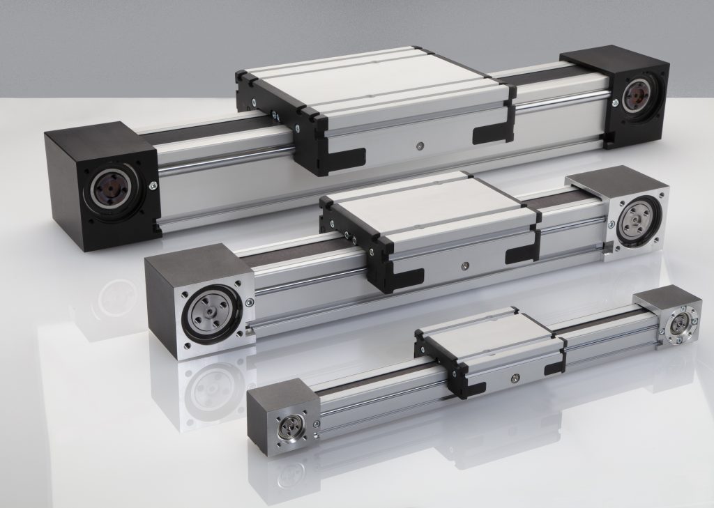 Die Lineareinheiten der neuen Baureihe sind serienmäßig mit einer Zahnriemenführung ausgestattet. Der breite und belastbare Zahnriemen ermöglicht die hohe Dynamik der Achse. Er schließt bündig mit dem Führungsprofil ab und ist selbst geführt. Damit können die neuen Lineareinheiten auch in größeren Längen problemlos über Kopf oder senkrecht montiert werden, ohne dass der Zahnriemen aufgrund seines eigenen Gewichts durchhängt.