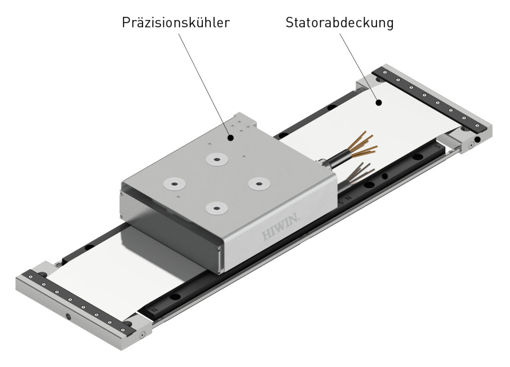 Hiwin erweitert mit dem Präzisionskühler LMFC und einer Statorabdeckung das Zubehör seiner wassergekühlten Linearmotoren der Baureihen LMFA und LMFP. Durch den Einsatz der Präzisionskühlung kann eine Leistungssteigerung der Kühlung und eine weitreichende thermische Entkopplung zwischen den Linearmotorkomponenten und der Maschine erreicht werden. Dies führt zu stabilen thermischen Bedingungen und verspricht, mit erhöhter Dauerbelastbarkeit und verbessertem Wirkungsgrad, einen konstanten Fertigungsprozess. Zusätzlich stehen zum Schutz der Statoren vor mechanischer Beschädigung durch z.B. Metallspäne neue Blechabdeckungen aus Edelstahl zur Verfügung. Die leicht magnetischen Statorabdeckungen sind in segmentierter oder einteiliger Ausführung erhältlich und werden rein über die magnetische Anziehungskraft bzw. zusätzlich über eine stirnseitige Klemmung fixiert.