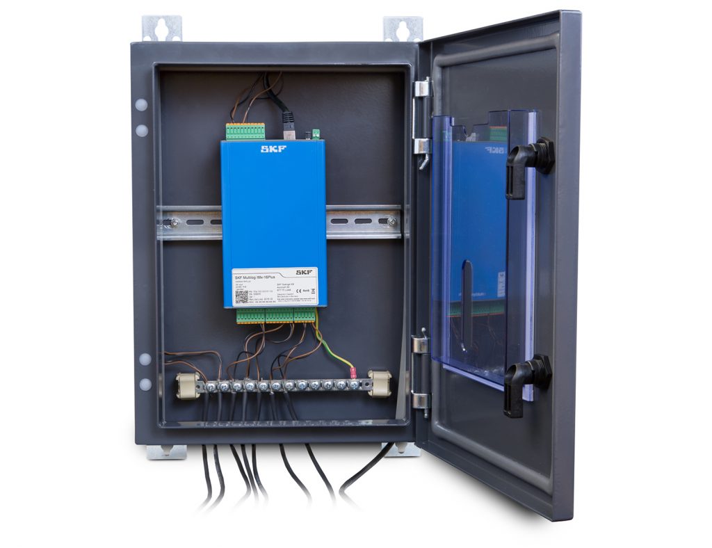 Das Unternehmen SKF erweitert sein Zustandsüberwachungsangebot um das kompakte Gerät Multilog IMx-16Plus. Das System ermöglicht es den Anwendern rotierender Maschinen, ungeplante Stillstände zu reduzieren und die Verfügbarkeit ihrer Anlagen und den Maschinenbetrieb zu verbessern. Es lässt sich unkompliziert mit anderen Geräten vernetzen und bietet die Möglichkeit, von einem zentralen Standort aus einzelne Maschinen oder auch ganze Anlagen zu überwachen. Das erlaubt eine genaue Zustandsüberwachung in weiten Teilen des Betriebs. Dafür empfängt das System Zustandsdaten (etwa von Schwingungs- oder Temperatursensoren) und ermöglicht so eine frühzeitige Fehlererkennung. Das System ist flexibel, sodass es sich an eine große Bandbreite von Produktionsumgebungen und -bedingungen anpassen kann. Es empfängt mobile Daten via GPRS sowie LTE und ist zusätzlich mit Ethernet-Schnittstellen ausgestattet, wie RJ45 oder Wi-Fi. Neben 16 analogen Eingängen, die typischerweise für Schwingungssensoren genutzt werden, aber auch die Option bieten, bis zu acht Temperatursensoren direkt anzuschließen, verfügt es außerdem über vier digitale Kanäle für Drehzahlsensoren.