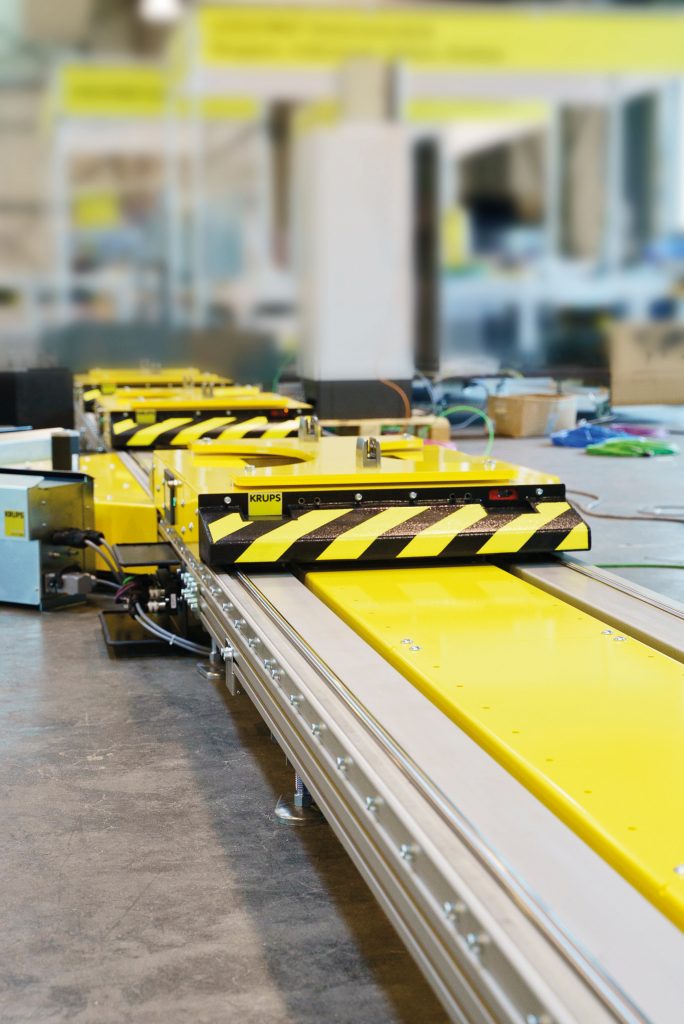 Die Fertigungshallen von Automobilherstellern oder Tier-1-Zulieferern gleichen vielerorts einem Uhrwerk. An den einzelnen Stationen widmen sich Roboter und Mitarbeiter eng getakteten Arbeitsschritten, um das behandelte Objekt pünktlich wieder in den Verfahrensfluss zu leiten. Doch wenn ein Zahnrad stockt, gerät das ganze Werk aus dem Takt, insbesondere wenn dieses Zahnrad das Produktions-Fördersystem ist. Deswegen stehen dort größtmögliche Verfügbarkeit und Flexibilität ganz oben auf der Anforderungsliste. Das setzt die Hersteller der Fördertechnik unter Innovationsdruck. Gefordert werden wartungsfreie und flexiblere sowie einfach zu integrierende Fördersysteme, die nach Verrechnung aller direkten und indirekten Kosten bestenfalls preiswerter und schneller verfügbar sind als alternative Lösungen.