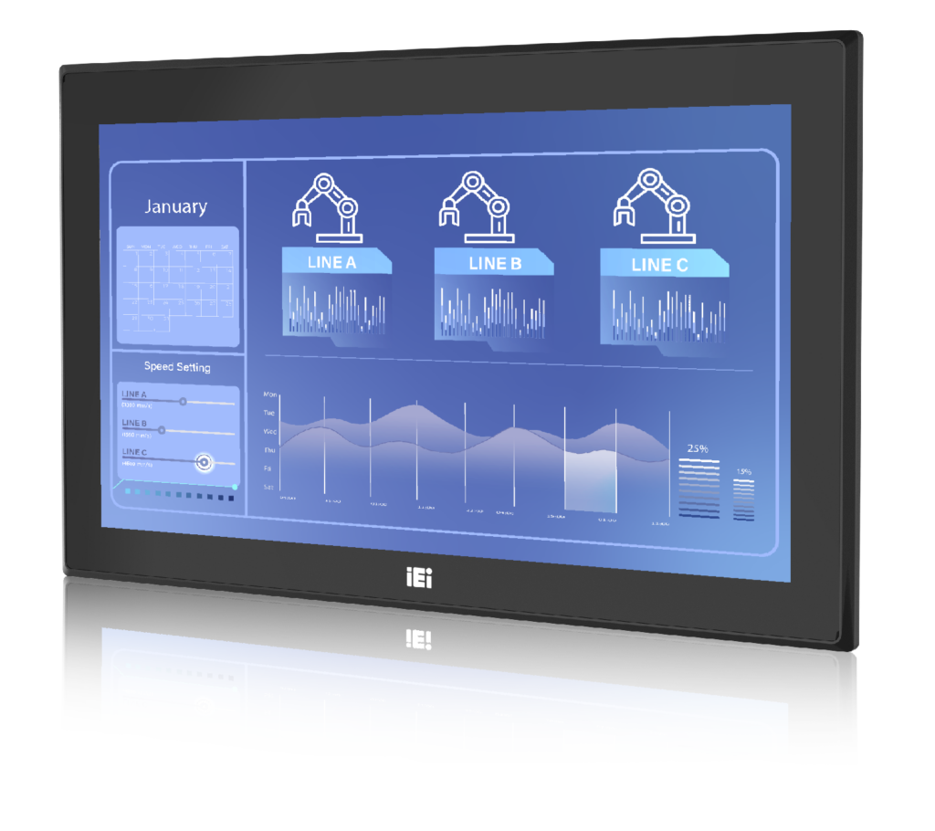 Der Compmall Panel-PC PPC2-C15-ADL basiert auf der Alder-Lake-Plattform von Intel. Die Spitzen-CPU Core i7-12700 bietet zwölf Kerne mit einer maximalen Turbo-Taktfrequenz von 4,90GHz. Einsatzgebiete für den frontseitig IP65-geschützten 15″-Panel-PC sind Industrieautomation, Maschinen- und Robotersteuerung. Der projiziert-kapazitive Touch lässt sich auch mit nassen Fingern und PU-Handschuhen bedienen. Wird der Panel-PC in ein Gehäuse oder einen Schrank eingebaut, sorgt eine spezielle Gummidichtung für Wasserdichtigkeit. Die Betriebstemperatur liegt zwischen -10 und 60°C. Das Display im Format 16:9 bietet eine Helligkeit von 450cd/m², eine Full-HD-Auflösung und einen weiten Ansichtswinkel von 170/160°. Die Lesbarkeit erhöht sich durch Anti-Glare-Beschichtung, der Anti-UV-Schutz sorgt für längere Haltbarkeit beim Einsatz im Außenbereich. Anwenderfreundlich ist ein neues grafisches BIOS-GUI, das sich per Touch bedienen lässt. Der Intel Xe-Grafikchip unterstützt Single Root Input/Output (SR-IOV) und Generator Lock (Genlock). Mit maximal 64GB-3.200MHz-DDR4-SO-DIMM steht ausreichend Arbeitsspeicherkapazität zur Verfügung. Zur Datenspeicherung dient ein 2,5″-Steckplatz für eine SATA-HDD/SSD.