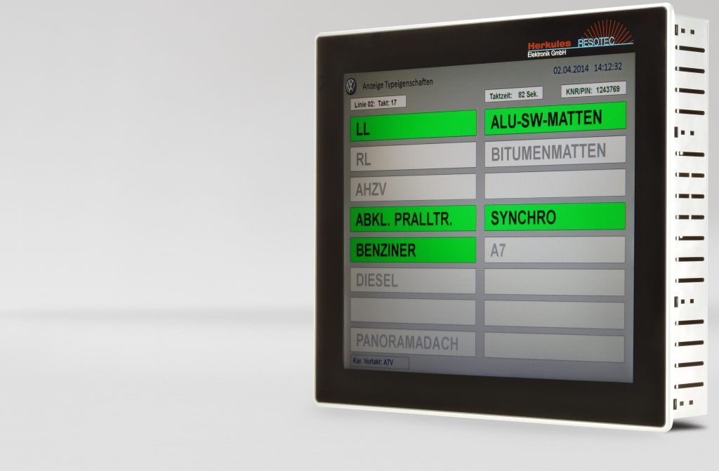 In diesen Produktionsanlagen werden für bestimmte manuell auszuführende Arbeitsschritte spezifische Fahrzeuginformationen benötigt, die bei verschiedenen Fahrzeugeigenschaften unterschiedliche Handlungen der Mitarbeiter erfordern. Durch die Nutzung der Bediensysteme Redis 2019 von Herkules-Resotec mit entsprechender Visualisierungssoftware und zugehörigen SPS-Bausteinen ist es möglich, die spezifischen Eigenschaften von Fahrzeugen und deren Kennung aus dem Fahrzeugdatentelegramm im Datenträger mit frei wählbaren Bezeichnungen zu definieren.