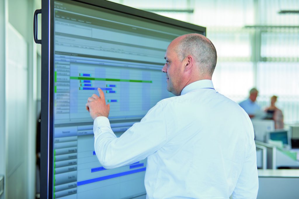 Im unternehmenseigenen Werkzeugbau von Phoenix Contact erschließt die durchgängige Verwendung digitaler Daten ebenfalls erhebliches Verbesserungspotential. Die Mitarbeiter stehen hier vor der Herausforderung, komplexe Spritzgießwerkzeuge für die Herstellung filigraner Kunststoffteile in immer kürzerer Zeit zu entwickeln und zu fertigen. Zur Optimierung der Prozesse werden die digitalen Daten dem entsprechenden physikalischen Werkzeug eindeutig zugeordnet. Durch die Verbindung zu den übergeordneten Systemen stehen Informationen wie Kosten oder Materialart projektbezogen zur Verfügung. Digitale Boards liefern die Datengrundlage für die anstehenden Maßnahmen. Aufgrund des Datentransfers in das SAP-System sowie interne Plattformen liegen alle Informationen vor, die gerade im jeweiligen Arbeitsbereich zur Entscheidungsfindung notwendig sind. Angaben wie der Projektstatus, Kosten, Termine oder Material fließen somit in die Überlegungen ein. Der Datentransfer funktioniert dabei in beide Richtungen: Auf Änderungen, die am digitalen Board vorgenommen werden, können sämtliche weitere Prozesse im Unternehmen via SAP zugreifen. Um für jeden Arbeitsschritt die relevanten Informationen zur richtigen Zeit am richtigen Ort zugänglich zu machen, setzt der Werkzeugbau ein Informationssystem ein, das alle Projekte weltweit transparent visualisiert. In Blomberg sind die digitalen Boards daher ein fester Bestandteil des täglichen Gemba-Walks. Die Idee des japanischen Begriffs Gemba kommt aus dem Lean Manufacturing und bedeutet, dass sämtliche Herausforderungen sichtbar sind und die Verbesserungsansätze direkt vor Ort entwickelt werden.