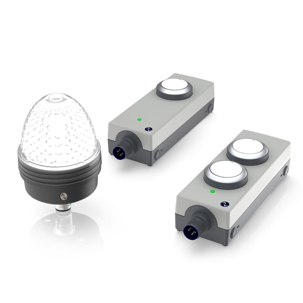 Zu den Neuheiten am SPS-Messestand von Rafi zählen feldtaugliche Befehlsgeräte und Signalleuchten mit IO-Link-Schnittstelle. Die Tasterbox E-Box IO-Link bietet die Möglichkeit, Taster mit RGB-Beleuchtung über den Sensor/Aktor-Kommunikationsstandard in Bussysteme zu integrieren. Durch den M12-Anschluss lassen sich die Einheiten in IP65 rasch montieren und in Betrieb nehmen. Gleiches gilt für die IO-Link-Versionen der Tilted-Diamond-Signalleuchten, die sich neben frei konfigurierbaren Helligkeitsstufen und Lichtfarben durch die Option auszeichnen, Alarme oder Maschinenzustände durch acht unterschiedliche Blinkmodi zu signalisieren.