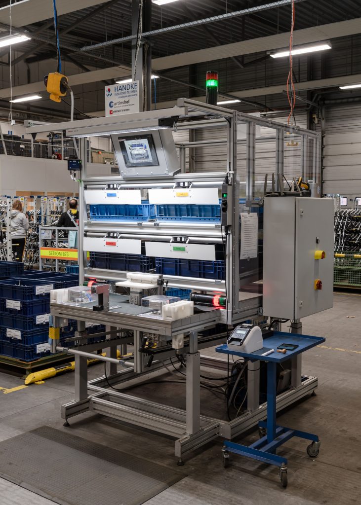 „Der Bedarf an Fehlervermeidung besteht überall in der Montage und Produktion. Wichtig ist die schnelle und flexible Anpassbarkeit an die Bedürfnisse der dort arbeitenden Person und die Anforderungen des Prozesses“, kommentiert Andreas Kebbel, Geschäftsführer bei Handke Industrie-Technik. Aus diesem Grund wird die gemeinsame Lösung als Systembaukasten mit einer großen Auswahl an Komponenten und Schnittstellen angeboten. Diese umfassen unter anderem Mechanismen zur korrekten Teileentnahme, z.B. Lichtschranken, Pick-to-Light- oder Pick-to-Voice-Drucktaster, Barcode-Scanner und proprietäre Pick-to-Door-Mechanismen mit Hubschaltern. Zudem gibt es Kontrollmechanismen wie Elektroschrauber mit Drehmoment- und Winkelerkennung und Vision-Systeme, sowie Möglichkeiten zur Roboterkollaboration. Zur Darstellung der individuellen Produktionsschritte stehen Bediengeräte der GOT2000-Serie zur Verfügung. Sie bieten nahtlose Konnektivität zum Poka-Yoke-Controller und können Text oder Bildsymbole genauso darstellen wie Animationen und Augmented Reality. Als Controller kommt, je nach Anforderung, eine SPS vom Typ iQ-R oder iQ-F zum Einsatz. Die Guided Operator Solutions lassen sich auch in Produktionsleitsysteme einbinden, sodass Arbeitsplätze vernetzt und Ressourcen in Echtzeit gesteuert und überwacht werden können.