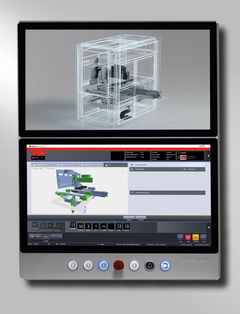 Eckelmann FCS präsentiert den Industrie-PC E-DualPanel mit zwei 21,5″-TFT-Displays (Full-HD, LED Backlight) und kapazitivem Multitouch. Mit dem Gerät sollen Maschinenhersteller und Anlagenbetreiber umfangreiche und komplexe Visualisierungsaufgaben einfach realisieren können, wie z.B. eine vollständig HMI-integrierte Auftragsverwaltung, Machine-Vision-Lösungen zur Überwachung von Prozessen, automatische Werkstückwechselsysteme oder einen digitalen Zwilling der Applikation. Der Panel-PC ist für den Einsatz unter rauen Industriebedingungen konzipiert (IP54 frontseitig, IP20 rückseitig). Er ist wahlweise mit einem Intel-Core-i3/i5/i7-Pentium-CPU der 9. Generation, acht USB-Ports und vier GBit-Ethernet-Anschlüssen sowie bis zu 64GB RAM ausrüstbar.