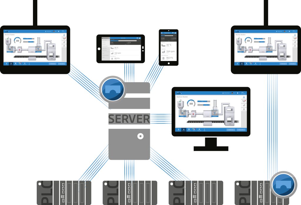 Diese Trennung von Back- und Frontend und das Responsive Design von VisiWin ermöglichen eine flexible Anpassung der HMI-Oberfläche an verschiedene Geräteklassen in der Fabrikautomation – einschließlich Smartphones, Tablets, IPCs, HMI-Panels, Office-PCs und Laptops. Anwender können ihre offene SPS zum Beispiel direkt mit Endgeräten wie Smartphones verbinden und von dort aus auf die HMI-Oberfläche zugreifen. So sparen sie zusätzliche Hardware. Sofern der SPS-Anbieter die Installation von Containern erlaubt, entstehen Anwendern dafür keine Zusatzkosten für die Hardware. Alternativ erfolgt die Kommunikation über einen zentralen VisiWin Server. Die Container-Runtime von Inosoft lässt sich außerdem auf prozess- oder maschinennahen Automatisierungsgeräten wie IoT-Gateways einsetzen, die in Produktionsumgebungen wichtige Industrie-4.0-Aufgaben übernehmen müssen, zum Beispiel die Überwachung von kritischen Maschinenfunktionen oder der Maschinenleistung. MK|Ware schafft Transparenz in der Fertigung: Maschinenzustände, Auftragsdaten und Rückmeldungen stehen in Echtzeit bereit. ‣ weiterlesen