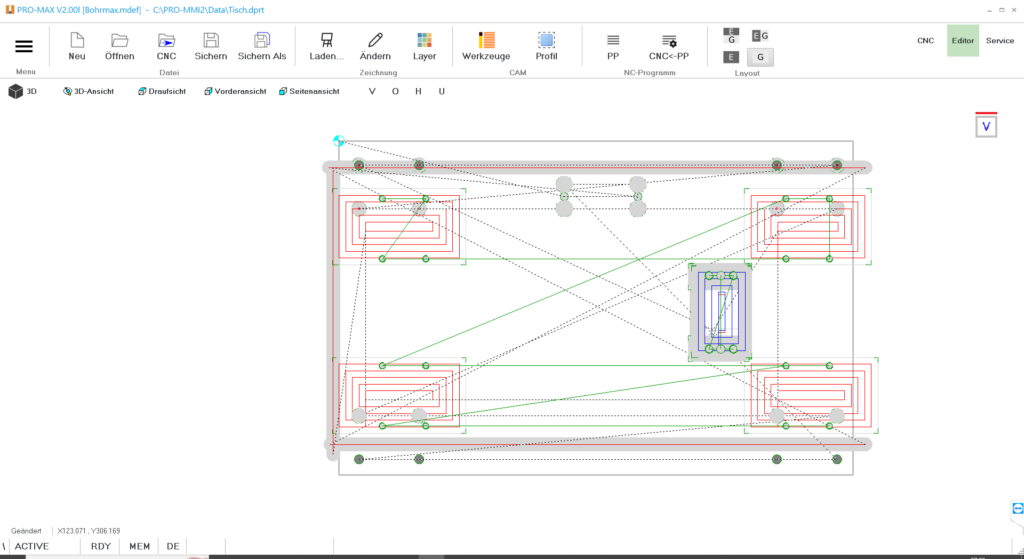 Auf einer zweiten Ebene können optional DXF-Dateien importiert werden. Das verwandelt die Bohrmax in eine vollständige Bohr- und Fräsmaschine mit der alle Konturen und Beschriftungen gefräst werden können. Dabei macht schon der Anschaffungspreis einen sehr großen Unterschied. Nach Angaben des Herstellers kostet die Bauer-Maschine kostet nur rund ein Viertel eines vergleichbaren Bearbeitungszentrums – erfüllt alle Anforderungen der ins Auge gefassten Zielgruppe aber sehr gut. Das entspricht der Philosophie von Othmar Bauer. „Wir wollen unseren Kunden keine Maschine um jeden Preis verkaufen, sondern Lösungen, mit denen sie vernünftig arbeiten und im Wettbewerb bestehen können.“