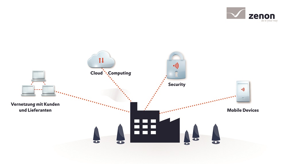 Erfolgsfaktoren für die Smart Factory: Vernetzung, Datenspeicherung in der Cloud, mobile Lösungen und höchste Sicherheit. –