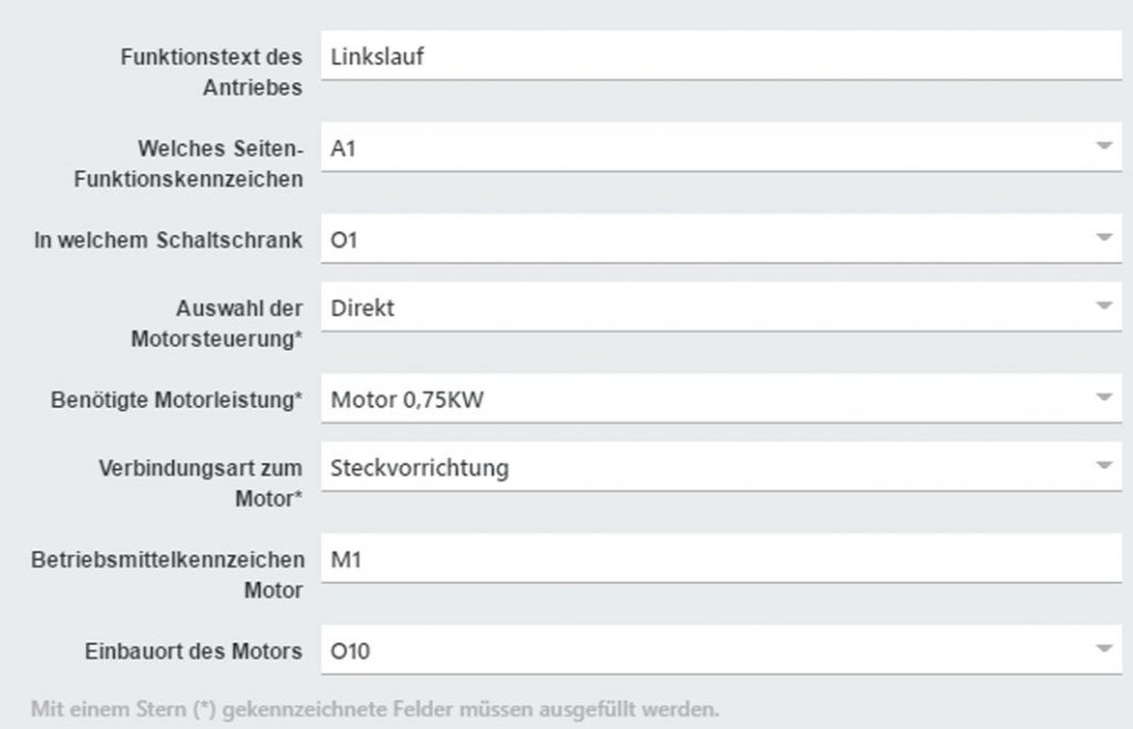 Über Mini-Konfiguratoren – hier am Beispiel einer Motorsteuerung – wählt der Anwender entsprechende Parameter aus und Eplan Cogineer generiert die korrekte Steuerung.