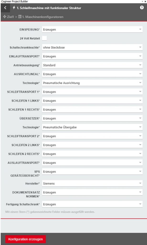 Am Projekt Schleifmaschine wird die komplette funktionale Struktur abgebildet. Die vollständige Projektdokumentation lässt sich nun per Knopfdruck auf Basis aller möglichen Maschinenvarianten erstellen.