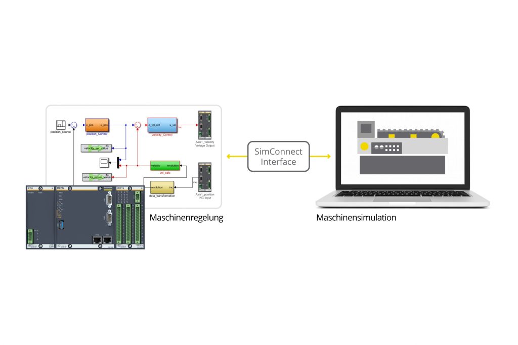 Die von Bachmann Electronic entwickelte Software M-Target for Simulink Version 2.50 ermöglicht eine modellbasierte Entwicklung für das M1-Automatisierungssystem. Das Steuerungs- und Regelungsprogramm wird gegen ein multiphysikalisches Simulationsmodell der Anlage getestet. Per Mausklick wird anschließend Code für die M1-Steuerung generiert, auf der CPU installiert und dort gestartet. Mit den SimConnect-Blöcken lässt sich eine Co-Simulation erstellen. Dabei wird der Regelungscode weiterhin auf der M1-Echtzeitsteuerung abgearbeitet. Teile der Anlagensimulation können jetzt am Entwicklungs-PC ausgeführt werden.