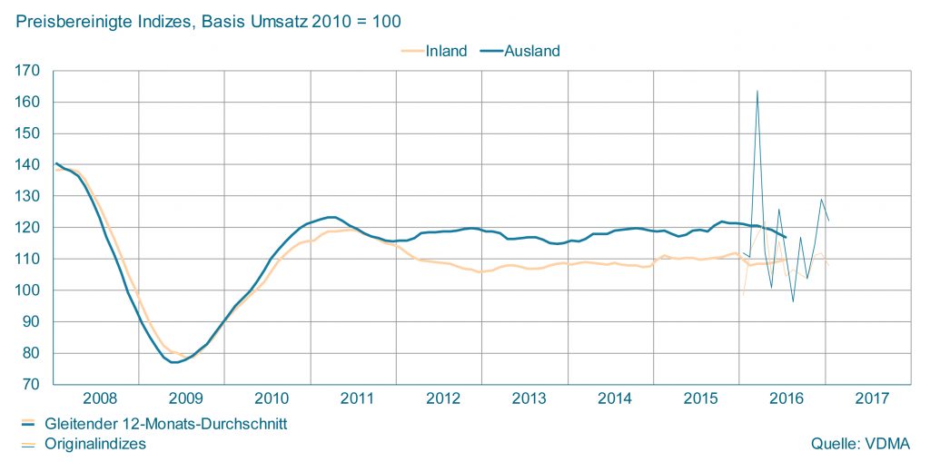 Der deutsche Maschinen- und Anlagenbau ist mit einem Zuwachs an Bestellungen in das Jahr 2017 gestartet. Der Auftragseingang stieg im Vergleich zum Vorjahr real um 9%. Die Belebung erfolgte gleichmäßig im In- und Ausland, die Bestellungen aus den Euro-Partnerländern legten um 15% zu. Im Januar überzeugte das Inland mit einem Zuwachs der Bestellungen um 10%, im Ausland lag der Zuwachs bei 9%. Von November bis Januar sank der Auftragseingang zum Vorjahr um real 2%. Das Inland verbuchte hingegen einen Zuwachs der Bestellungen von 7%, während die Auslandsbestellungen um 5% sanken.