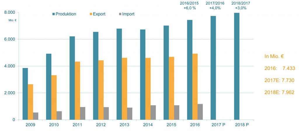 Die Kunststoff- und Gummimaschinenbauer aus Deutschland rechnen für das aktuelle Jahr mit einer Steigerung der Umsätze um real 4%. Für das Jahr 2018 wird ein Plus von 3% prognostiziert. „Ausschlaggebend war die äußerst erfreuliche Entwicklung auf den Auslandsmärkten speziell im 2. Halbjahr 2016“, sagt Ulrich Reifenhäuser, Vorsitzender des Fachverbandes. Der Auslandsumsatz legte in diesem Zeitraum kräftig zu, sodass sich für das Gesamtjahr 2016 ein Exportzuwachs von 5,1% errechnet. Der deutsche Produktionswert stieg um 6% auf 7,4Mrd.€. Nach drei Jahren des Rückgangs werden voraussichtlich auch die Exporte nach China 2017 wieder wachsen, so die Prognose. Die Exporte in die USA als wichtigstes Absatzland für deutsche Kunststoff- und Gummimaschinen blieben im 1. Quartal 2017 stabil. Weiteres Wachstum (+58,3%) konnte in Mexiko, dem drittwichtigsten Absatzland, sowie in Südkorea (+44,6%) verzeichnet werden. In Großbritannien fielen die Exporte im 1. Quartal um 31%. Im Gesamtjahr 2016 konnte das deutsche Exportvolumen auf 4,9Mrd.€ gesteigert werden.
