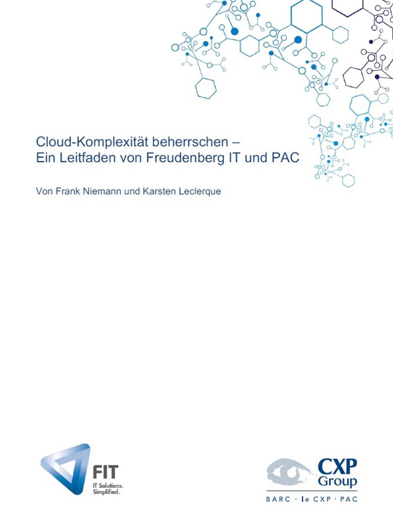 Egal ob Public, Private oder Hybrid – Cloud-Lösungen spielen für über 50% der Unternehmen im mitteleuropäischen Raum eine wichtige oder sehr wichtige Rolle, wie die Studie ‚PAC CxO Survey‘ belegt. Freudenberg IT (FIT) und das Analystenhaus PAC haben deshalb einen neuen praxisnahen Leitfaden veröffentlicht, der dabei hilft, Steuerungsaufgaben rund um den Betrieb einer Cloudinfrastruktur zu definieren. Das Dokument fasst die wichtigsten Stolpersteine zusammen und spricht Empfehlungen für praktikable Lösungen aus. Vor diesem Hintergrund liefert der Leitfaden Denkanstöße für fünf erfolgsentscheidende Aspekte: Auswahl des richtigen Betriebsmodelles bzw. mehrere Betriebsmodelle; Qualifizierung der IT-Organisation; Sicherheit und Compliance; Bestellung und Bereitstellung von Cloud Services sowie Nutzerverwaltung und Portale für die Orchestrierung von Cloud Services. Der Praxisleitfaden ‚Cloud-Komplexität beherrschen‘ kann kostenfrei angefordert werden.