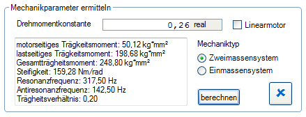 Ermittelte Mechanikparameter eines Zweimassenschwingers