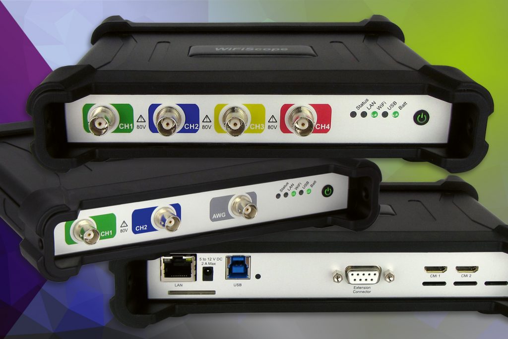 Die kompakten Oszilloskope von Plug-In Electronic können mittels Ethernet-Verbindung oder über USB2.0/3.0 verwendet werden. Sie verfügen über eine integrierte Batterie, die komplett kabellose Messungen ermöglicht, wodurch eine kontinuierliche Datenerfassung gewährleistet ist. Aufgrund der Plug&Play-Funktionalität können die WiFiScopes direkt mit dem Computer verbunden werden und sind ohne spezielle Netzwerkkenntnisse anwendbar und damit äußerst benutzerfreundlich.