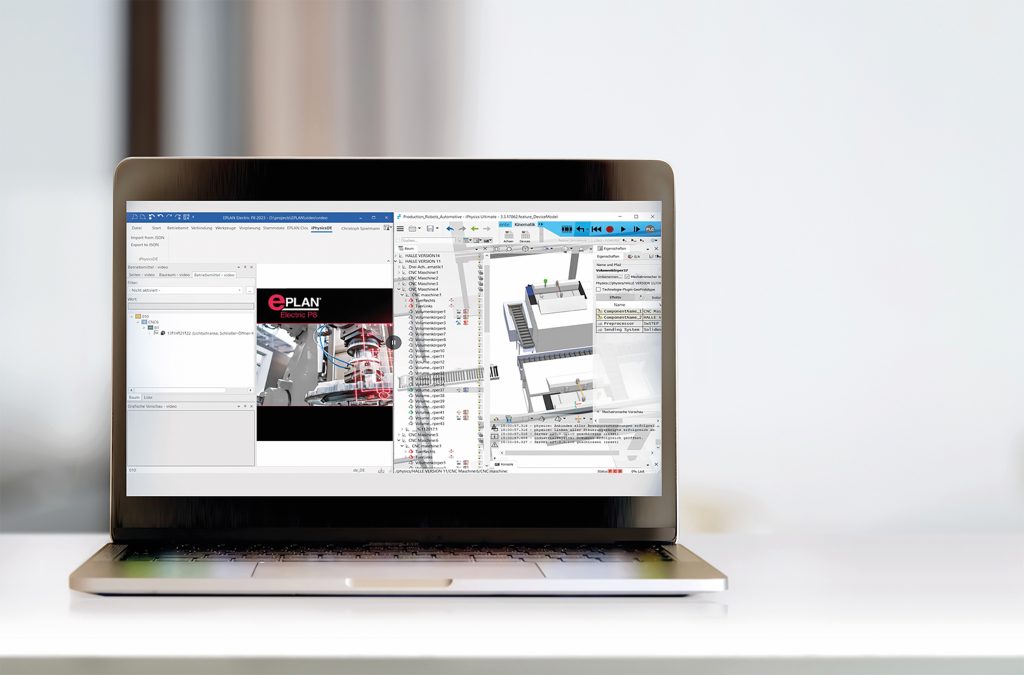 Gerade in Zeiten des Fachkräftemangels und der gestiegenen Personalkosten bietet dieses Vorgehen viele Vorteile. Durch die Integration von Eplan in Iphysics können die erstellten Stromlaufpläne hinsichtlich der genutzten Geräte auf Richtigkeit überprüft werden, bevor sie in der realen Umgebung implementiert werden. Dies hilft, Fehler und Missverständnisse frühzeitig zu erkennen und zu beheben, was Zeit und Kosten spart. Außerdem ist so eine virtuelle Inbetriebnahme möglich, bei der die Stromlaufpläne und Steuerungen in einer simulierten Umgebung getestet werden können, ohne dass physische Hardware vorhanden sein muss. Dadurch lässt sich die Steuerungslogik vor der tatsächlichen Umsetzung optimieren und validieren.