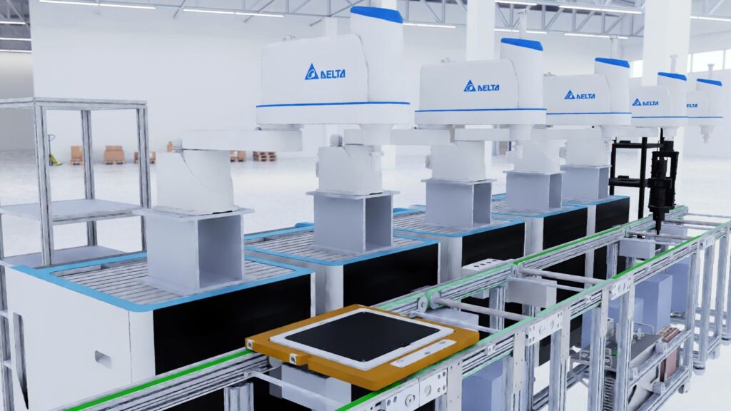 Auf Grund der vielen Komponenten und Produkte, die für die Kunden hergestellt werden müssen, werden die Produktionslinien von Delta häufig geändert und neu eingestellt. Das ist in einer sehr komplexen, sich schnell bewegenden Elektronikmontagelinie für die Montage von Schaltnetzteilen nicht einfach. Das Team verbindet Maschinen in der Produktionslinie und verwendet dann Versuchsmodelle und statische Bilder, um physische Kollisionselemente, Probleme und Fehler zu erkennen und zu beseitigen.