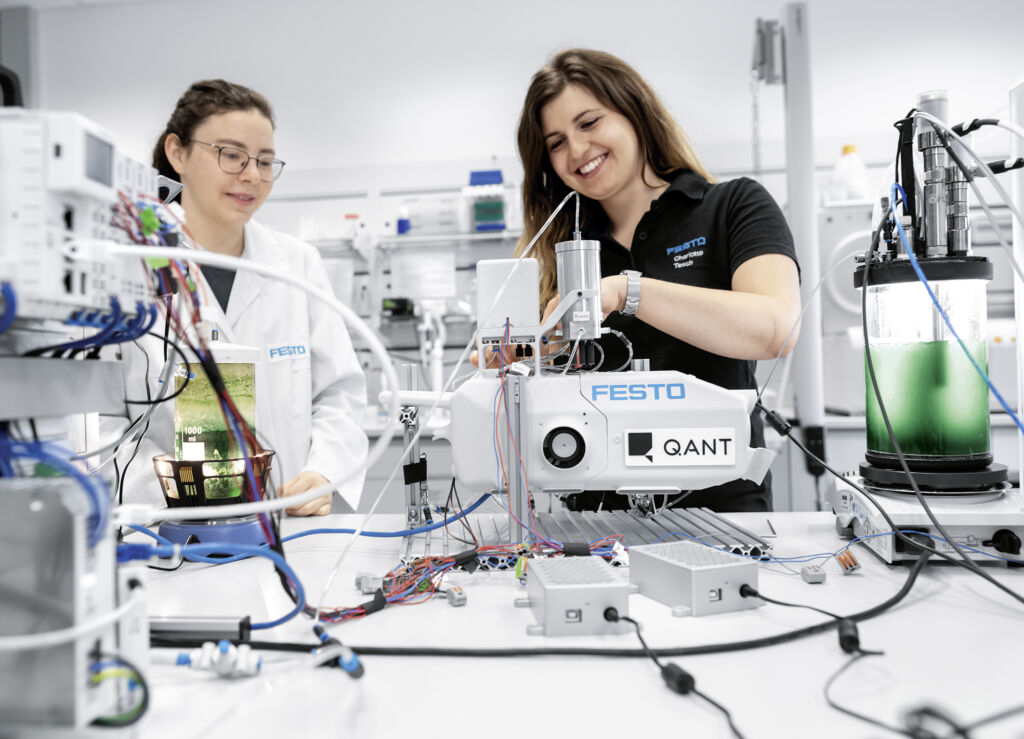 Festo und Q.ant gehen eine strategische Partnerschaft ein. Das gemeinsame Ziel beider Unternehmen ist, Automatisierungstechnik in Kombination mit Quantentechnologie für die industrielle Kultivierung von Biomasse zu nutzen. Hierfür bieten Algen großes Potenzial, da diese zehnmal mehr Kohlendioxid als Landpflanzen binden und diese Effizienz mit entsprechender Technik noch gesteigert werden kann.