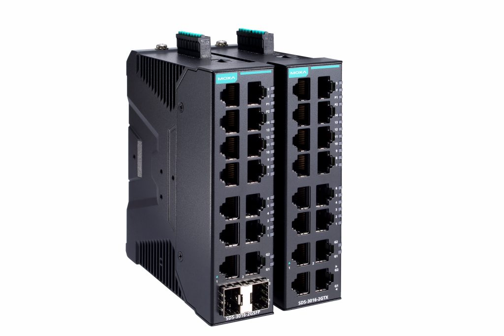 Moxa erweitert sein Portfolio um den Ethernet Switch SDS-3016. Er verfügt über einen Gigabit-Uplink, acht zusätzliche Ports sowie einen DIP-Drehschalter auf der Unterseite des Gerätes, der dem Anwender profilbasierte Einstellungen ohne Webbrowser ermöglichen soll. Weitere Leistungsmerkmale des Geräts sind die Protokolle Ethernet/IP, Profinet und Modbus/TCP, ein Dashboard-GUI für Gerätekonfiguration und Port-Diagnoseberichte sowie die Möglichkeit zur Hutschienen- oder Rack-Montage. Kompakte Abmessungen erlauben den Einsatz auch unter beengten Bedingungen.