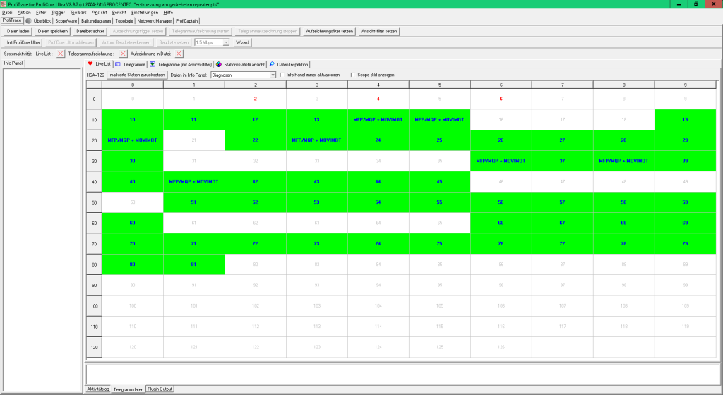 Im Lager des Kunden kam es wiederholt zu diversen Ausfällen im Antrieb der Paletten-Fördertechnik. Dies hatte negative Auswirkungen, da Lieferzeiten nicht immer eingehalten werden konnten, was auch Folgen für die Just-in-time-Produktionen hatte. Da technische Anlagen in der Logistik häufig sehr komplex und weitläufig sind, ist meist nicht mit einer schnellen Lösung zu rechnen. Auch die Erstmessung ließ auf eine längere Suche schließen, denn sie zeigte zwar auf, welcher Bereich betroffen war, nicht aber wo der Fehler auftrat. Mit dem Quicktester von Leadec konnte das Trouble-Shooting jedoch innerhalb von nur zwei Stunden erfolgen. Mit Hilfe des Quicktesters werden häufige Fehler, wie beispielsweise Busausfälle, Bus-Neuanläufe oder Diagnosemeldungen des Busses durch ein akustisches Signal hörbar gemacht. Das kompakte Gerät erfordert keine weitere Messtechnik, sondern besteht lediglich aus dem Tester und der dazugehörigen Hupe.