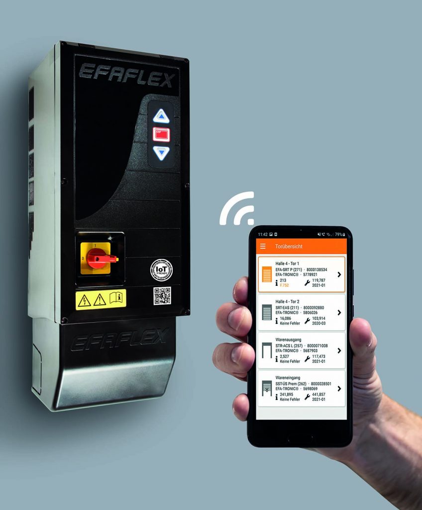 In Zeiten eines immer umfassenderen digitalen Wandels sind nicht nur zukunftsfähige Technologien, sondern auch zuverlässige Sicherheitssysteme essenziell, um Arbeitsprozesse effizient, skalierbar und nachhaltig gestalten zu können. Mit der durchweg digitalen Handhabung des Torbetriebs im eigenen, geschützten Wifi-Netzwerk wird Efa-SmartConnect den steigenden Anforderungen der modernen Unternehmenswelt gerecht. Die Bedienung der IoT-Lösung erfolgt über das Handy per Efa-Smartphone-App, kompatibel mit den gängigen Betriebssystemen iOS und Android. Zu den Funktionen zählen etwa die Visualisierung des aktuellen Torstatus, die Parametrierung essenzieller Toreinstellungen wie Offenhaltezeit sowie die Anzeige von Wartungsdaten, Fehlerspeicher und aktueller Fehlermeldungen inklusive Beschreibungen und Ursachenanalyse. Dank der smarten Vernetzung können Nutzer zudem auf Wunsch Servicemeldungen auch direkt an den Hersteller des Tores senden.
