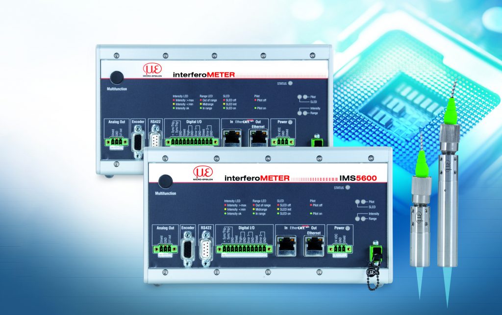 Die neuen Weißlicht-Interferometer bieten eine sehr hohe Genauigkeit und eine Auflösung bis in den Sub-NanoMeter-Bereich. Die Systeme bestehen aus einem kompakten Sensor und einem Controller, der in einem industrietauglichen Gehäuse untergebracht ist. Eine im Controller enthaltene aktive Temperaturregelung sorgt für eine hohe Stabilität der Messung. Der Grundabstand des Sensors, der bis zu 20mm vom Messobjekt entfernt positioniert werden kann, ist im Verhältnis zum Messbereich von 2,1mm bei der Abstandsmessung sehr groß. Bei der Dickenmessung lassen sich Gläser oder Folien von 35µm bis zu 2,1mm messen. Hier liegt der Messbereichsanfang bei 41mm Das Spektrum der SLD liegt überwiegend im NIR, weswegen die Messung auch bei antireflex-beschichteten Gläsern funktioniert. Ein weiteres Einsatzgebiet ist die Montage von Festplatten. Da das Interferometer absolute Messwerte liefert, können auch Stufen und Kanten zuverlässig und ohne Signalverlust erfasst werden. Die kompakten Sensoren, die einen Durchmesser von 10mm haben, können auch bei beengten Verhältnissen einfach integriert werden. Ein Pilotlaser im Sensor erleichtert die richtige Positionierung zum Messobjekt. Durch die industrieoptimierte Ausführung ist auch eine Inline-Verwendung des Messsystems möglich. In der Halbleiterindustrie und der Display-Fertigung sind in machen Bereichen Sub-Nanometer-Auflösungen erforderlich. Hier kommt das IMS5600-DS zum Einsatz, das speziell für Anwendungen im Vakuum oder im Reinraum konzipiert ist. Ein Sonderabgleich des Controllers sorgt bei diesem Messsystem für die notwendige Auflösung. Über verschiedene digitale Schnittstellen lassen sich die Systeme in übergeordnete Steuerungsarchitekturen einbinden. Zur Einstellung kann der Zugriff auf den Controller über einen Standard-Browser auf den integrierten Webserver erfolgen.