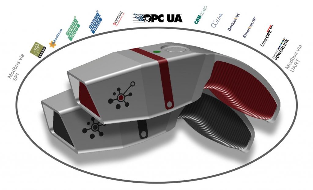 Auch die Leseperformance braucht sich nicht hinter den hochwertigsten Marktbegleitern verstecken. Zudem wurde die Elektronik vom Board-Level an neu entwickelt und die Algorithmik über einen ASIC eingebunden. Durch selbst-optimierende Algorithmen ist keine komplizierte Einstellung über eine Software nötig. Neben einer Standardausführung, die auf Labelcodes optimiert ist, steht auch eine DPM-Variante zur Verfügung, die auf direkt markierte und kleine Codes ausgelegt ist. Hierfür wurde eine spezielle Beleuchtungs-/Optikkombination mit adaptiven Aufsätzen entwickelt. Damit können auch kleinste direktmarkierte Codes schnell und zuverlässig eingelesen werden. So ist das Lesen von Modulgrößen von 0,5mm (2mil) möglich, d.h. der kleinste zu lesende Data-Matrix Code hat eine Größe von 0,7×0,7mm. Das neuartige Lesebildfeld wird durch vier Laserlinien am Außenbereich abgegrenzt und ermöglicht so dem User die gezielte Selektion einzelner Codes. Die meisten Handheld ID Systeme Kommunizieren über RS232 oder USB. In der Produktion müssen sie allerdings über entsprechende Busankoppler oder Eingangskarten mit aktuellen Steuerungen verbunden werden. Der ID Phaser dagegen kommuniziert in allen Kommunikationsstandards (Profibus, Profinet, Ethercat, OPC UA, RS232, USB, usw.) direkt aus dem Gerät heraus, ohne das eine weitere Hardware nötig ist. Die DPM-Variante wird mit einer Spannung von 5V bis 24V oder PoE versorgt. Durch das ergonomische Design wurde das Gewicht des Handscanners auf 286g reduziert, was ihn deutlich leichter macht, als viele Kunststoff-DPM-Reader. Zudem liegt der Schwerpunkt des Gerätes komplett mittig, was völlig neue Arbeitsergonomien ermöglicht. Auch durch seine Formgebung entlastet er das Handgelenk des Anwenders.
