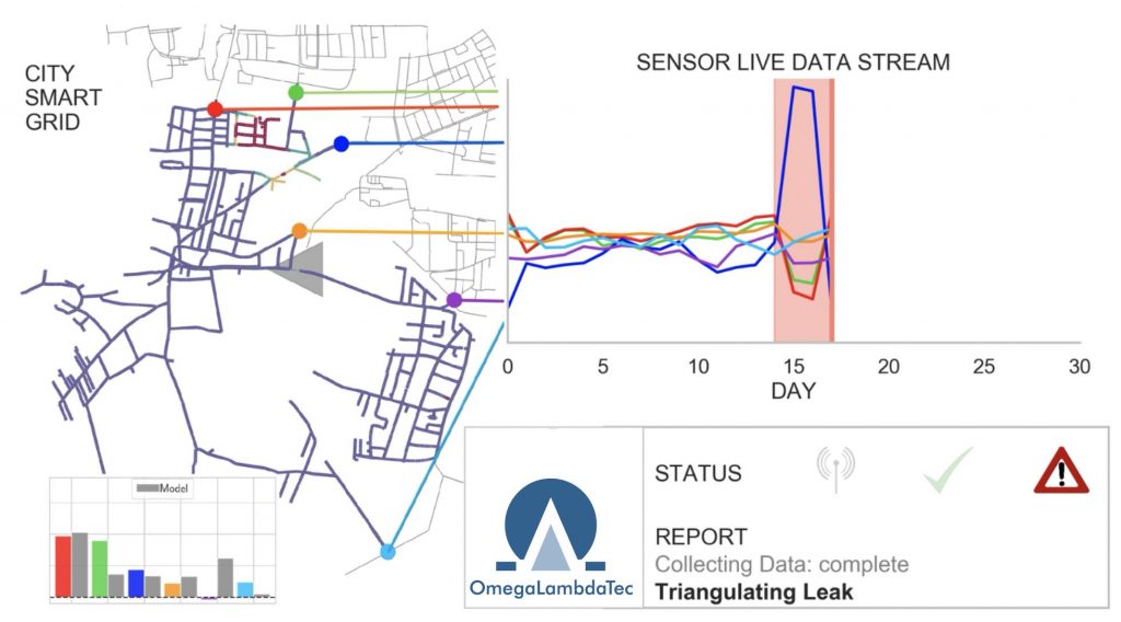 Der Ausgangspunkt des Services für Wasserversorger ist zunächst deren bereits vorhandene Sensorik im Netz. Jedoch ist in vielen Fällen die Anzahl an installierten Sensoren, deren Position und teilweise auch die Datenqualität nicht für solche Präzisionsmessungen im Trinkwassernetz optimiert. Daher unterstützt OmegaLambdaTec die Wasserversorger dabei ihr Trinkwassernetz in ein Smart Water Grid zu transformieren. Dabei werden die Potenziale als auch die Grenzen der aktuellen Daten- und Sensorinfrastruktur aufgezeigt. In einem nächsten Schritt wird simulationsgetrieben die optimale Anzahl und Positionierung für den Rollout von neuer Sensorik bestimmt, basierend auf KPIs wie Lokalisationsgenauigkeit, Ziel-Leckagengröße und Kosten.