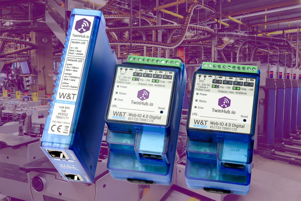 Die IoT-Box als Hardware-Basis von TwinHub liefert Daten aus der Maschine, z.B. über OPC UA oder Modbus TCP.