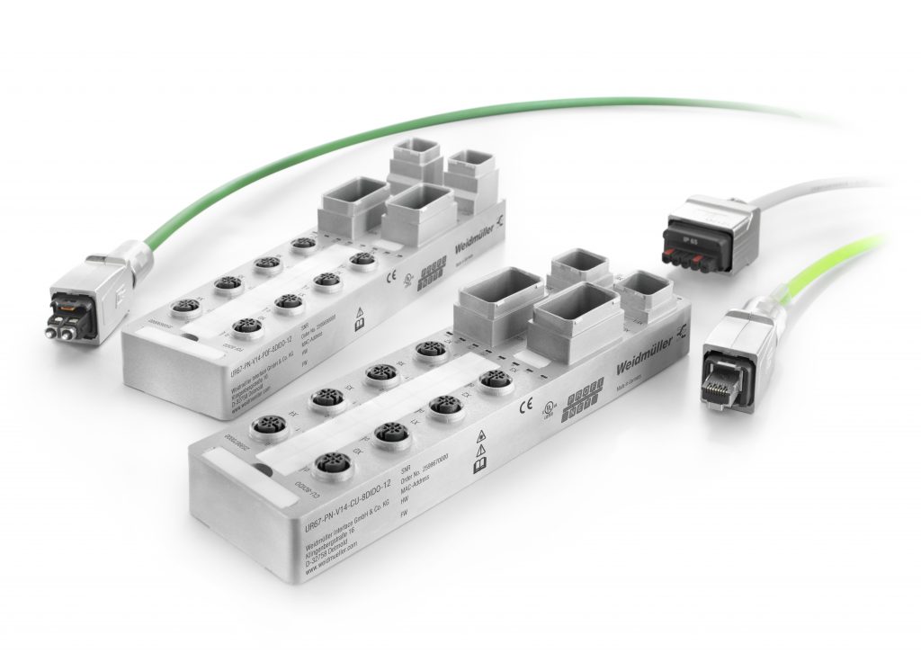 Weidmüller ergänzt seine U-Remote-Familie um die Push/Pull-Module UR67. Die IP67-I/O-Module umfassen Kupfer- sowie POF-Anschlüsse und sind gut für den Einsatz in vollautomatisierten Produktionsprozessen unter rauen Bedingungen geeignet. Sie unterstützen die Profinet-Funktion Fast Start-Up, die ein schnelles Hochlaufen ermöglicht, weswegen die Geräte in weniger als 500ms betriebsbereit sind. Der integrierte Webserver erlaubt eine einfache Inbetriebnahme und schnelle Suche im Fehlerfall. Darüber hinaus sind auch Firmware Updates und Downgrades möglich. Die neuen Module sind in den zwei Varianten mit 16DI und mit 8DI/8DO erhältlich. Die robusten Metallgehäuse der Steckverbinder sorgen auch bei rauen Anwendungen für eine hohe Lebensdauer. Die Geräte sowie der PushPull-Steckverbinder sind für einen Einspeisestrom von 2x16A ausgelegt. So lassen sich eine Vielzahl an Modulen versorgen, ohne neu einspeisen zu müssen.