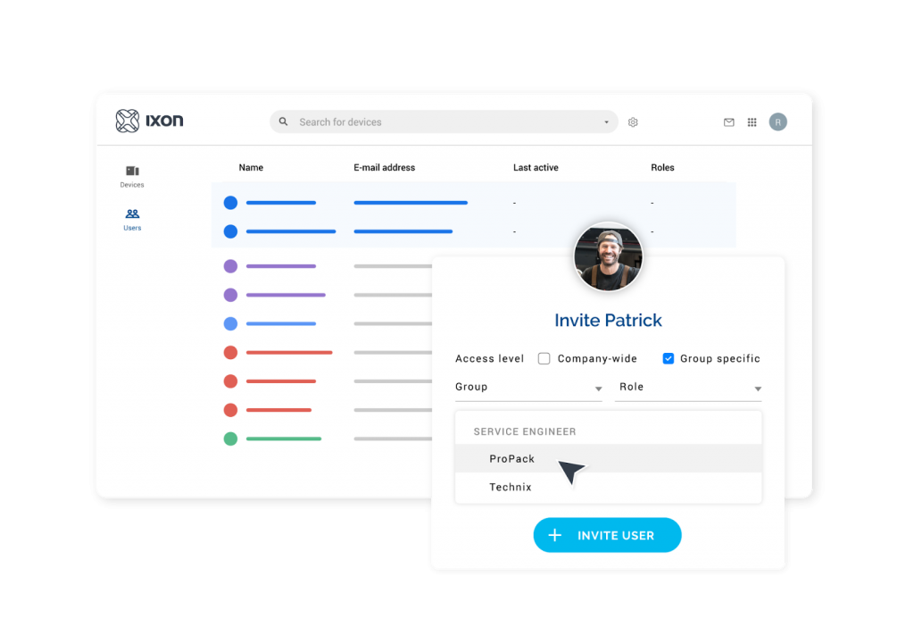 Dank der rollenbasierten Zugriffskontrolle bietet Ihnen die IXON Cloud 2 verbesserte Möglichkeiten mit Ihren Kunden zusammenzuarbeiten. Richten Sie Zugriffskategorien ein und erteilen Sie darin spezifische Rechte für den Fernzugriff auf Maschinen.