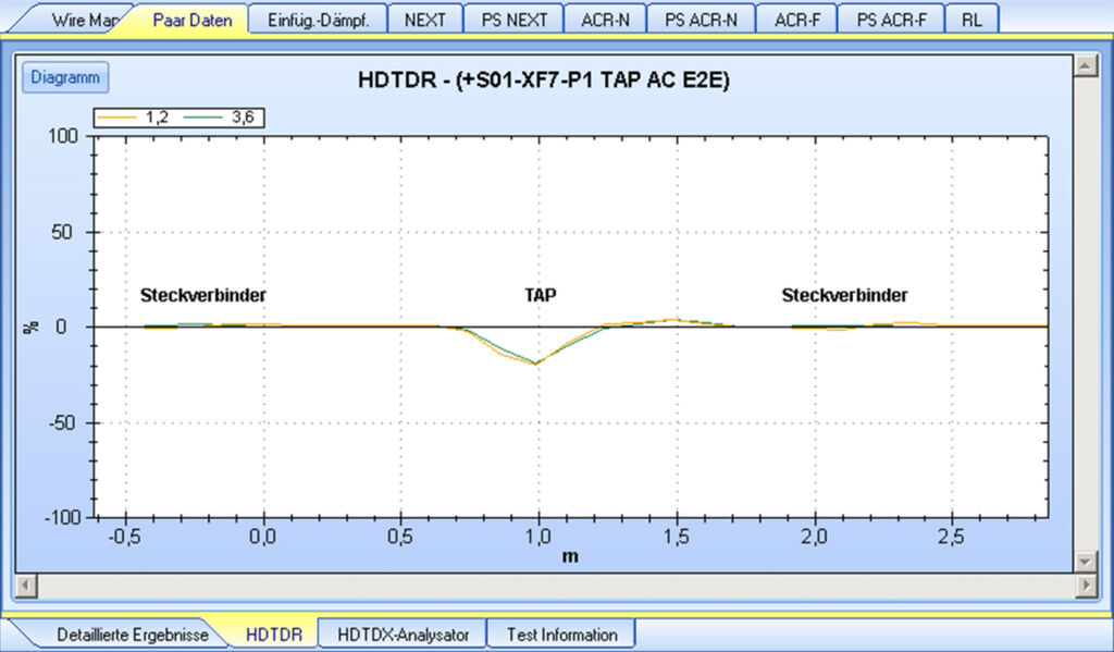 Bei der HDTDR-Messung wird ein kurzschlussbehafteter TAP als extreme Stoßstelle angezeigt.
