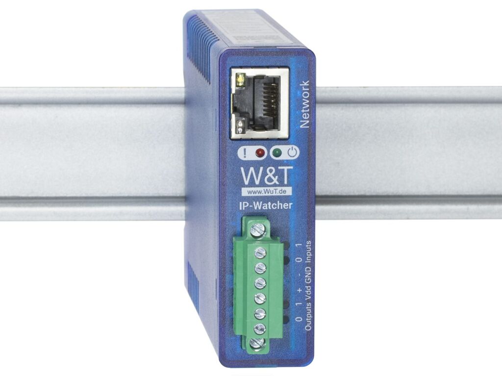 Wiesemann & Theis bietet mit dem IP-Watcher eine unkomplizierte Lösung zur Netzwerküberwachung an. Das Gerät prüft zyklisch die Erreichbarkeit von Netzwerkkomponenten und meldet Störungen. Der IP-Watcher überwacht bis zu 100 Netzwerkteilnehmer zyklisch per ICMP (Ping) und schlägt bei Nichterreichbarkeit Alarm. Neben einer Meldung per E-Mail kann das auch über einen Schaltkontakt erfolgen. So können bei Netzwerkausfall auch Störmeldeeinrichtungen, Warnlampen oder Hupen angesteuert werden. Im Browser bekommt der Anwender auf einen Blick die Übersicht über den Status der überwachten Netzwerkknoten. Auch die Konfiguration erfolgt über die Browseroberfläche und ist ohne spezielle IT-Fachkenntnisse leicht zu bewältigen. Der IP-Watcher ist kompakt und mit seiner 24V-Versorgung und Montagemöglichkeit für die Hutschiene für den Einsatz im Schaltschrank bzw. Netzwerkschrank vorbereitet. Alternativ kann der IP-Watcher auch per PoE versorgt werden. Im Gegensatz zu serverbasierten Überwachungslösungen arbeitet der IP-Watcher autark. So gibt es keine Beeinflussung durch andere Anwendungen oder Systemupdates, die die Funktion beeinträchtigen. Aufgrund geringer Störemissionen, hoher Störfestigkeit und geringem Energiebedarf eignet sich der IP-Watcher für Office- und Industrie-Umgebungen.