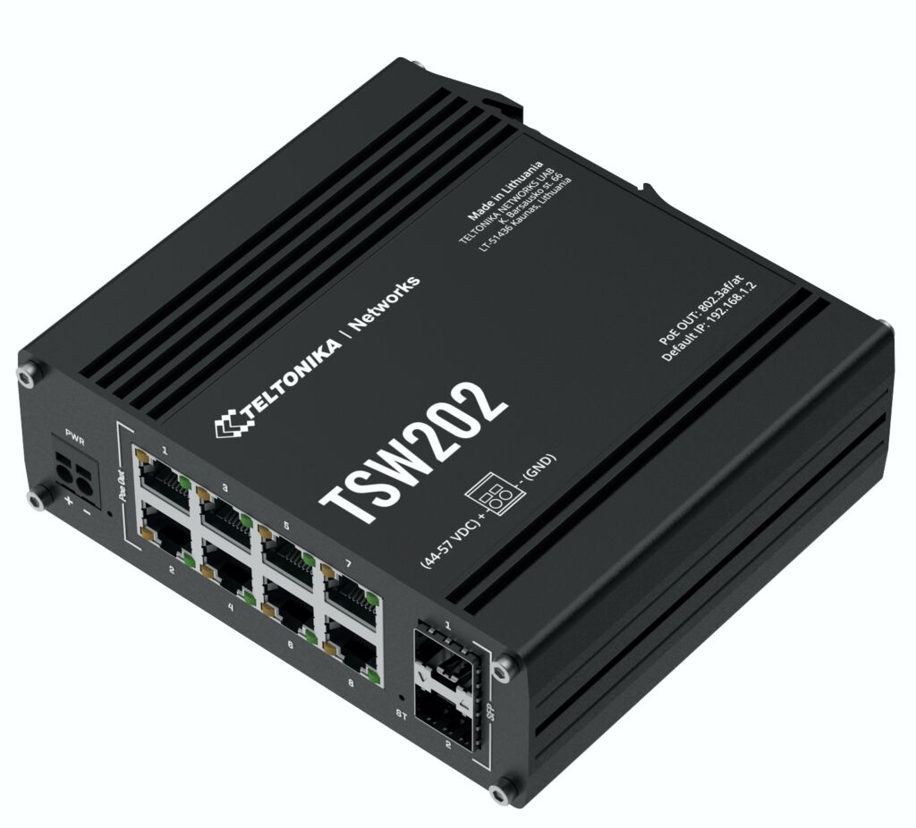Die beiden neuen lüfterlosen Managed Switches TSW202 und TSW212 von Teltonika erlauben einen Datendurchsatz von bis zu 20Gbit/s. Der Betrieb ist an allen Spannungsebenen von 7 bis 57V sowie bei Temperaturen von –40 bis +75°C möglich. Der Eigenverbrauch liegt bei maximal 8W. Der TSW202 überzeugt zusätzlich mit PoE+. Er bietet nicht nur granulare Netzwerkmanagement-Funktionen, sondern zentralisiert auch die Stromverteilung der peripheren Geräte. Die acht GBit-Ethernet-Ports stellen jeweils bis zu 30W für die Versorgung von Kameras und anderen Peripheriegeräten bereit. Das lüfterlose Gerät unterstützt MRP-, Profinet sowie Ethernet/IP und kann Jumbo-Frames bis 10.000B verarbeiten. Aufgrund des integrierten Hutschienen-Adapters ist die Montage im Schaltschrank keine Herausforderung.