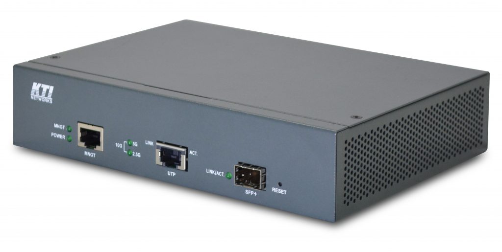 Mit dem KTGC-221 präsentiert KTI einen Medienwandler, der als 10G Multi-Rate Konverter neben Multi-Gigabit-Ethernet (2,5 und 5GBit), auch NBASE-T genannt, noch 10GBASE-T und Gigabit-Ethernet-Konvertierungen (1000BASE-T) unterstützt. Wer Datenübertragungsraten oberhalb von 1GBit nutzen will, der war bisher auf Glasfaserleitungen oder 10GBASE-T Verbindungen angewiesen. Doch nun etabliert sich unter der Bezeichnung NBASE-T bzw. Multi-GBit-Ethernet ein neuer Standard, dessen offizielle Bezeichnung IEEE 802.3bz lautet. Der Vorteil von NBASE-T gegenüber 10GBASE-T: Auf gewöhnlichen Cat.5e bzw. Cat.6-Kabeln lassen sich Datenübertragungsraten von 2,5 bzw. 5GBit realisieren. Gemäß IEEE 802.3bz-Standard sind auf Cat.5e-Kabeln 2,5GBit (bis zu 100m Kabellänge) und auf Cat.6-Kabeln 5GBit (bis zu 100m Kabellänge) möglich. Primär für die Konvertierung von 10G-Kupfer auf 10G-Glasfaser entwickelt, öffnet der KTGC-221 als Multi-Rate-Konverter die Tür zu einer digitalen Welt, in der das Twisted-Pair-Ethernet-Kabel in Zukunft ganz neue Möglichkeiten bieten kann. Der KTGC-221 ist ausgestattet mit einem 10G/5G/2.5G/1G RJ45-Port und einem 10G/5G/2.5G/1G SFP+ Port. Das Management erfolgt via Web oder SNMP. Der KGCT-221 unterstützt Digital Diagnostic Monitoring (DDM). Ein Weitbereichs-Netzteil ist im Lieferumfang enthalten.