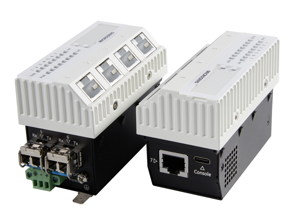 Microsens zeigt Micro Switches mit 2x 10GBit Uplink und Multi-GBit Downlink mit PoE++. Damit können auch Geräte mit hohen Anforderungen an Datenrate und Leistung wie Wi-Fi 6 Access Points oder hochauflösende PTZ-Kameras ohne aufwändige Verkabelung und Stromversorgung effizient und mit erhöhter Ausfallsicherheit mit dem Datennetz verbunden werden. Neben hohen Datenraten ermöglichen die beiden 10GBit Uplinks Flexibilität beim Redundanzkonzept für erhöhte Ausfallsicherheit, beispielweise mit einer kabeloptimierten Glasfaser-Ringverkabelung oder mit Dual Homing, bei dem ein Micro Switch über zwei getrennte Leitungen mit verschiedenen Core-Switches verbunden wird. Vier 10/100/1000Base-T PoE+ User Ports stellen auch bei gleichzeitigem Betrieb der angeschlossenen Endgeräte jedem die volle Datenrate ohne Einschränkungen zur Verfügung. Der zugriffsgeschützte Multi GBit Downlink Port mit 1/2,5/5GBit Ethernet und PoE++ mit bis zu 60W nach IEEE 802.3bt ist besonders für Geräte mit hohen Anforderungen an Datendurchsatz und elektrischer Leistung ausgelegt. So können beispielweise Wi-Fi 6 Access Points, wie sie in der modernen Gebäudetechnik, Smart-Building-Technologien und IoT vermehrt zum Einsatz kommen, nahtlos in die Netzwerk-Infrastruktur integriert werden. Im M45-Einbaumaß gefertigt ist der Micro Switch einbau- und anschlusskompatibel zur Vorgängergeneration. Dadurch können vorhandene Micro Switches mit geringem Aufwand ausgetauscht werden.