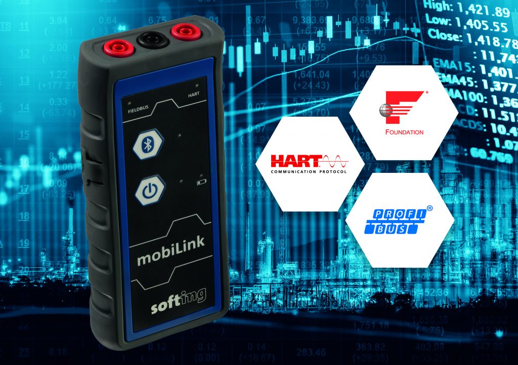 Mit der Einführung von Mobilink bietet Softing den Zugang zu den Prozessindustrieprotokollen Hart, Foundation Fieldbus und Profibus PA über eine Schnittstelle an. Das Interface kommuniziert über USB oder Bluetooth mit einem Smartphone, Laptop oder Tablet und ist geeignet für die mobile Inbetriebnahme und Wartung von Feldgeräten. Es ist batteriebetrieben, robust gebaut und eignet sich für den Einsatz im explosionsfähigen Bereich. In Kombination mit der passenden Software, z.B. dem Communication Configurator, eignet es sich für Parametrierung, Vorkonfiguration, Inbetriebnahme, Diagnose und Monitoring.