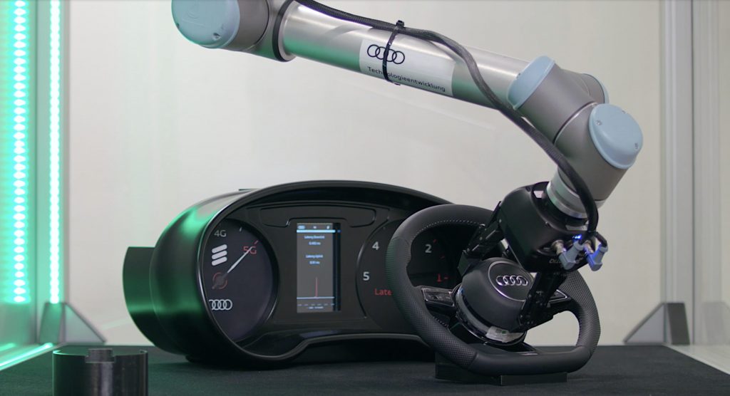 Bei Audi sorgt der neue Mobilfunkstandard in einem Testlabor dafür, dass Produktionsroboter ohne Kabel in die Automatisierung eingebunden werden. Ein Cobot mit Greifer setzt dabei Airbags passgenau in das Lenkrad ein. Ein Vorgang, der künftig jeden Tag vielfach so im Werk ablaufen könnte. Das Besondere ist bei dieser Testanwendung der Augenmerk auf die Personensicherheit. Denn der Roboter muss wireless im Gefahrenfall genauso schnell und sicher stoppen wie in herkömmlichen Fällen. Laut Audi ist mit 5G die Performance der dezentralen Steuerung über Funk genauso gut wie per Kabel. Aus Sicht des Automobilherstellers zeigt das Beispiel, dass 5G unter realen Produktionsbedingungen funktionieren kann. Entsprechend sei die 5G-Technologie bereit für den großen Einsatz, auch wenn es noch ein bis zwei Jahre dauere, bis 5G in Deutschland Realität ist. Die Technik hinter dem mit 5G vernetzten Roboter hat Audi zusammen mit Ericsson entwickelt. Gemeinsam sollen weitere Erkenntnisse für den 5G-Einsatz und neue Szenarien für die Smart Factory definiert werden. Etwa beim Einsatz von fahrerlosen Transportsystemen deren WLAN-Technik heute immer wieder mit abbrechenden Verbindungen und Fehlern kämpfen muss. Der ausschlaggebende Vorteil dafür sei, dass bei 5G erstmals auch der Fokus auf Verfügbarkeit und niedrige Latenzen gelegt werde, die in der Fertigung gebraucht werden.