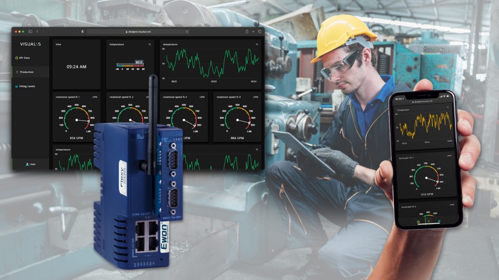 Anwender der VPN-Router Ewon Flexy können ab sofort das Maschinen-KPI-Dashboard von Wachendorff und Visualys auf all Ihre Geräte aufspielen. Die Daten bleiben an der Maschine und werden nicht in eine Cloud übertragen. Der Nutzer entscheidet, was mit seinen Daten passieren soll. Das Dashboard ersetzt kein Scada-System, sondern bietet eine zusätzliche Möglichkeit der Datenvisualisierung, natürlich auch mobil. Ohne aufwändiges Training und ohne Installation einer Konfigurationssoftware können Nutzer in wenigen Minuten ihr eigenes kostenfreies Dashboard mithilfe eines Online-Designers erstellen und dieses in der Free-Variante direkt zur Nutzung herunterladen.
