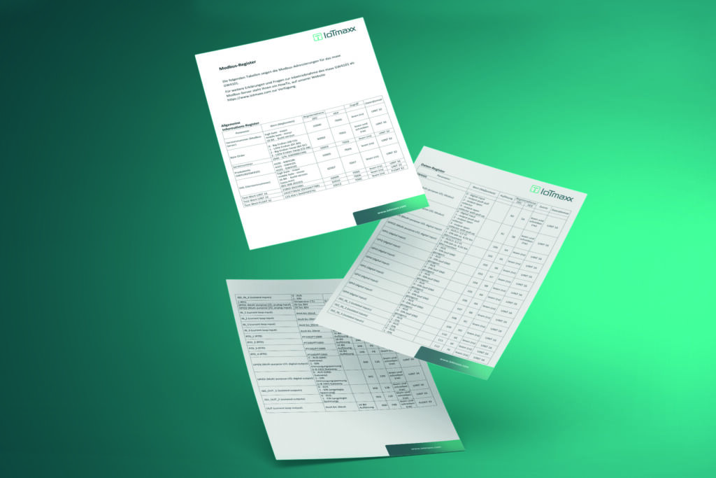 IoTmaxx stellt dem Nutzer ein Modbus-Register zur Verfügung, in dem alle Ein- und Ausgänge des jeweiligen Gateways angelegt sind. Das Gerät hinterlegt dort z.B. Sensordaten, die es von der Maschine oder Anlage bekommt. Diese Informationen lassen sich mit dem Modbus Client vom Server abfragen und anschließend in der Prozessleitebene etwa für Regel- und Steueraufgaben nutzen oder archivieren. Über die einzelnen Ein- und Ausgänge (Coils) sind Lese- und Schreibzugriffe auf das Register möglich. Je nach Anwendungsfall und verwendetem Gateway kann die Anzahl der Ein- und Ausgänge mit den entsprechenden Registerplätzen variieren.
