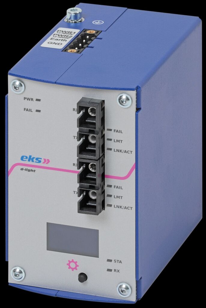 Mit dem Ringkoppler DL-CAN-FD-R-FV von EKS lassen sich CAN-Segmente redundant über Lichtwellenleiter koppeln. Er unterstützt sowohl klassische CAN-Protokolle wie CANopen oder DeviceNet als auch CAN-FD mit Übertragungsraten bis 8Mbit/s. Der Ringkoppler ist einfach und komfortabel über ein im Gerät integriertes OLED-Display mit Bedientaste konfigurierbar. Mit zwei Versorgungseingängen, die eine redundante Spannungsversorgung ermöglichen, ist eine hohe Betriebssicherheit gegeben. Sollte ein Fehler auftreten, signalisiert der Ringkoppler diesen auf dem Display, über die Status LEDs sowie über das integriertes Fehlerrelais. Der DL-CAN-FD-R-FV eignet sich für alle Anwendungen, in denen hohe Sicherheit bei der CAN-Übertragung gefordert ist.