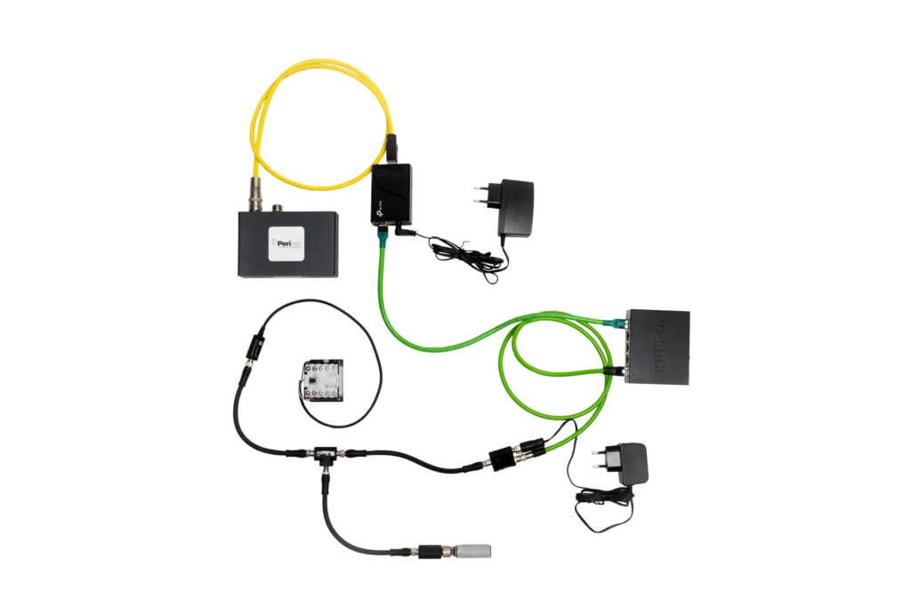 Im Starter Kit Plus werden ein Schütz und ein Distanzsensor digitalisiert. Um diese netzwerkfähig zu machen, erfolgt der Anschluss an smarte Adapter (PeriNodes). Das heißt, Schütz und Distanzsensor verwandeln sich in aktive Netzwerkteilnehmer – oder anders gesagt – in kleine Server. Weiterhin gibt es im Starter Kit Plus einen Edge-Computer (PeriMica), welcher virtualisierte Anwendungen hosten kann. Es ist also ein Mini-Rechenzentrum in einer Box. Auf diesem Edge Computer werden die übergeordneten Anwendungen gehostet, welche typischerweise in IoT-Applikationen zu finden sind, namentlich Datendrehscheibe, Knotenmanagement, Anwendungslogik und ein Dashboard. Die Verbindung von Sensoren und Edge-PC erfolgt über SPE und zeigt, wie man auch komplexere Strukturen (Baum/Linie) mittels Single Pair Ethernet aufbauen kann. Dabei werden über das Kabel sowohl die Daten übertragen als auch die Sensoren/Aktoren mit Energie versorgt.