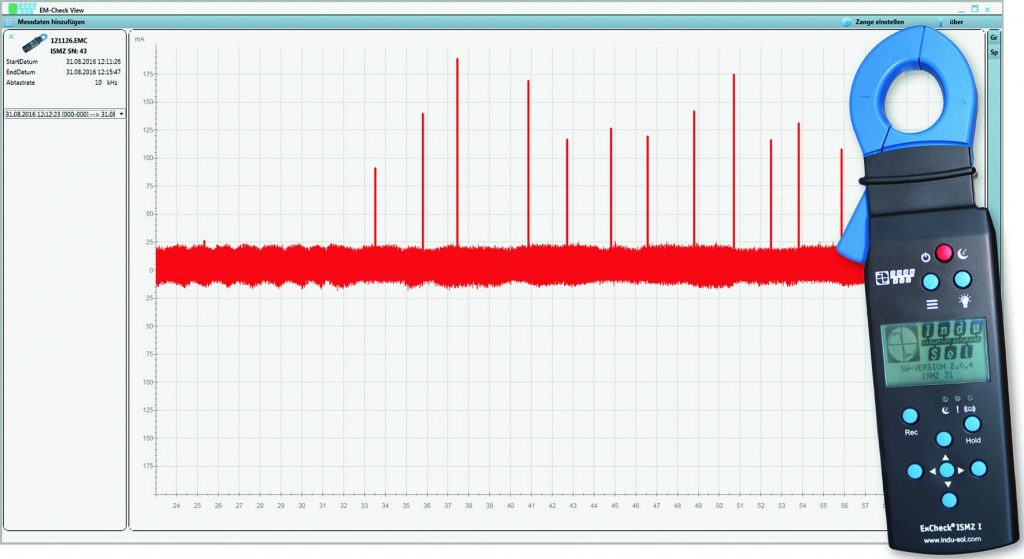 Als mobiles und handliches Messgerät zur Erfassung von Störströmen auf der Leitung eines Automatisierungsbusses liefert die Intelligente Strommesszange EMCheck ISMZ I Anlagenbetreibern und Instandhaltern Aussagen darüber, inwieweit derartige Störströme Ursache von Funktionsstörungen der eingesetzten Steuer- und Regeltechnik sind. Diese treten mitunter allerdings nur sporadisch auf. Deshalb zeichnet die Zange durch den integrierten Speicher die gemessenen Werte über einen Zeitraum von bis zu 14 Tagen hinweg auf. Durch dieses ‚Langzeitgedächtnis‘ lernt die Zange sozusagen die Normalwerte und speichert künftig nur noch Werte außerhalb des Toleranzbereiches. Anomalien werden dadurch sofort erkennbar und erlauben dem Nutzer, die Qualität seiner Maschine oder Anlage im EMV-Bereich präzise zu beurteilen.