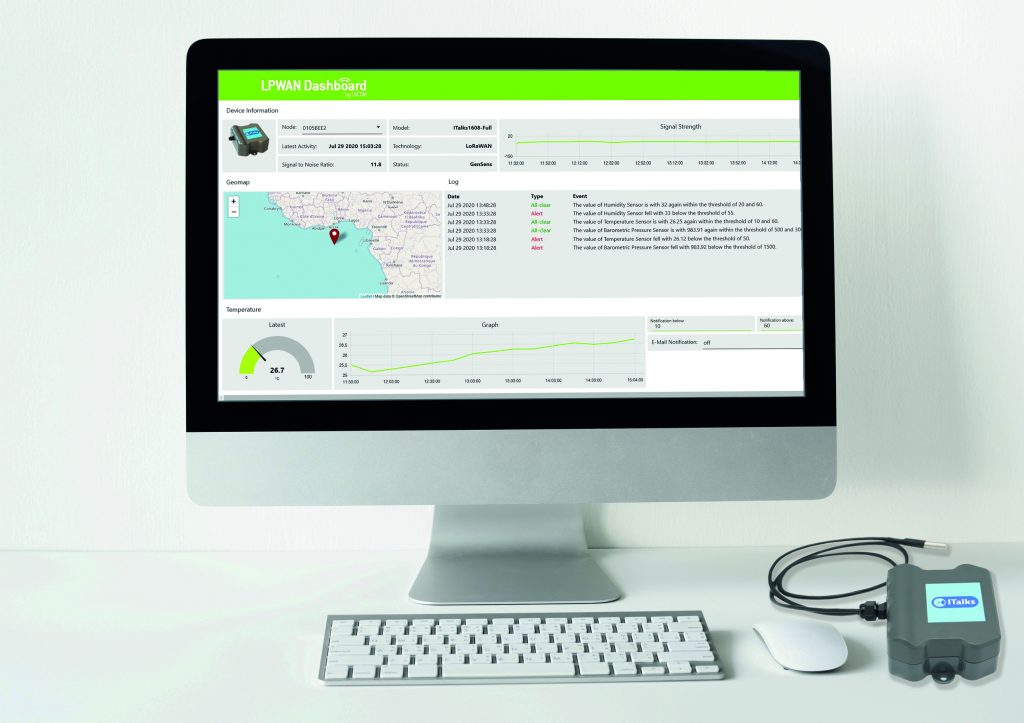 Die IIoT-Lösung von Lucom soll Anwendern einen niederschwelligen Einstieg ermöglichen. Das vorkonfigurierte Dashboard wurde nach Plug&Play konzipiert und verlangt keine tiefgehenden Fach- oder Netzwerkkenntnisse. Der Konfigurationsaufwand für die Inbetriebnahme der Geräte ist gering. Sensordaten wie Temperatur, Feuchtigkeit, Bewegung oder Füllstand können via LoRaWAN und NB-IoT gesammelt und über das Dashboard nachvollzogen werden. Bei der Über- oder Unterschreitung von festgelegten Grenzwerten werden Anwender umgehend benachrichtigt.