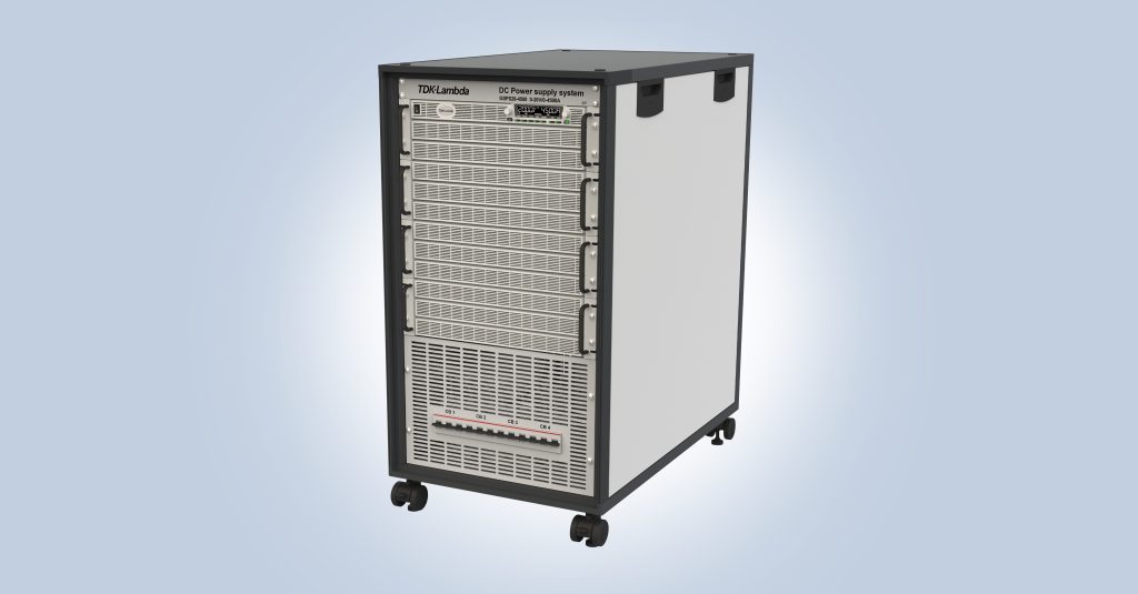 TDK gibt die Einführung der programmierbaren DC-Stromversorgungen der Serie TDK-Lambda Genesys+ mit 90kW Nennleistung in 19-Zoll-Rack-Gehäuse (GSPS 20U) bekannt. Die GSPS-Systeme gehen nahtlos in die Betriebsarten Konstantspannung, Konstantstrom und Konstantleistungsbegrenzung überführen. Die Schaltschränke sind auf arretierbaren Rollen (Rädern) montiert, so dass sie in Forschungs- oder Produktionseinrichtungen leicht umgestellt werden können. Die Serie erfüllt die Anforderungen für das Testen und Messen von Automobilkomponenten, Batterien für Elektrofahrzeuge, Luft- und Raumfahrt, Hochleistungsmagneten, medizinische Bildgebung, Halbleiterverarbeitung sowie Anwendungen in der industriellen Automatisierung und Prozesssteuerung. Die zwölf 7,5kW-Netzteile sind intern so konfiguriert, dass sie zwölf Ausgangsspannungsbereiche von 0-20 bis 0-1500V mit Ausgangsstromstärken von bis zu 4500A liefern. Das Parallelsystem bietet ein dynamisches Lastverhalten sowie eine Ripple- und Noise-Charakteristik, die mit der eines einzelnen Netzgerätes vergleichbar ist. Der Eingangsspannungsbereich ist dreiphasig 342 bis 528Vac 47 – 63Hz und deckt nominal 380, 400, 415, 440, 460 und 480Vac ab. Die Eingangs-Leistungsschalter sind auf der Vorderseite des Schaltschranks zugänglich, und die parallelen Ausgangsschienenanschlüsse befinden sich auf der Rückseite. Alle Genesys+-Stromversorgungen sind standardmäßig mit Sicherheits-/Auto-Neustart, Speicherung der letzten Einstellung und integrierten Schutzfunktionen für Spannung, Strom und Temperatur ausgestattet.
